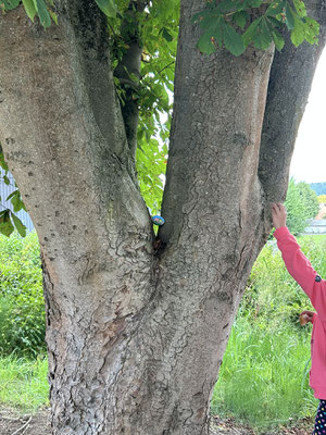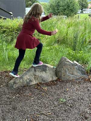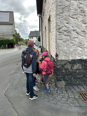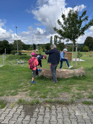 Dazwischen waren die Ergebnisse des Natur-Projektes der Schüler zu bewundern, an denen auch unsere Wanderer mitgearbeitet hatten. Besonders interessant war aber der Mehrgenerationenplatz in Rainrod, und später dann das Herz, das sich auch noch drehen läßt. Aber auch kleine Fundstücke auf dem Weg, wie die aus dem Nest gefallenen Vogeleier lösten die spannende Fragen aus, ob die kleinen Eier denn noch auszubrüten wären. Am Schluß gabs dann noch Brotzeit am Dorfplatz in Hopfgarten. Hier hatte es den Kids vor allem der neue Brunnen angetan. Er animiert wohl zum klettern, was nicht so leicht zu unterbinden ist.
