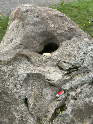 Auch mit der Wanderung hatten wir dann Glück; es war zwar sehr windig und bewölkt aber trocken. Und es machte Spaß, die Steine an verschiedenen Stellen des Basaltweges auszulegen.