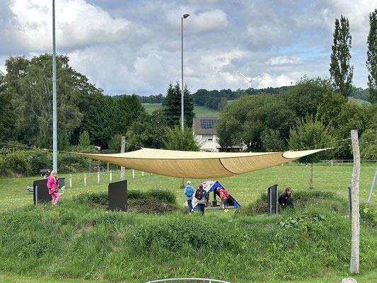 Und unsere Spieleauswahl mit Boule für Erwachsene und Kinder, diversen Wurf- und Geschicklichkeitsspielen und einem Outdoor-Mikado sowie einer Kreativecke mit Kinderschminken und Steine bemalen sorgte dann dafür dass auch Leben auf dem Platz entstand.