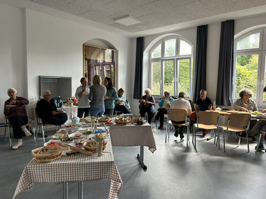 Dann ging es mit dem Konzert weiter, bekannte Lieder, darunter auch schwierige wie das Ännchen von Tarau waren im Repertoire und wurden mit Bravour vorgetragen. Und dann gings ans Mitsingen mit ausgegebenen Texten und weitgehend bekannten Liedern waren dann alle mit Freude dabei. Danach saßen alle noch lange und ließen sich die leckeren Kuchen schmecken. Die hätten auch für doppelt so viele Personene noch gereicht. Wirklich wieder sehr gelungen.