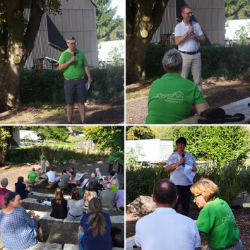 Moderiert duch Beatrice Anlauff bei strahlendem Sonnenschein folgte nun noch der offizielle Teil der Eröffnung unseres Dorfplatzes. Landrat Mischak, unser Bürgermeister Timo Georg vertreten durch Eva Vornberger und die Ortsvorsteherin Annette Steuernagel würdigten das ehrenamtliche Engagement, dankten den Förderern und Spendern und wünschten dem wunderbaren Platz viel Leben durch eine aktive Dorfgemeinschaft bei Festen oder einfach nur so als Treffpunkt für Begegnung, eben eine echte kommunikative Mitte.