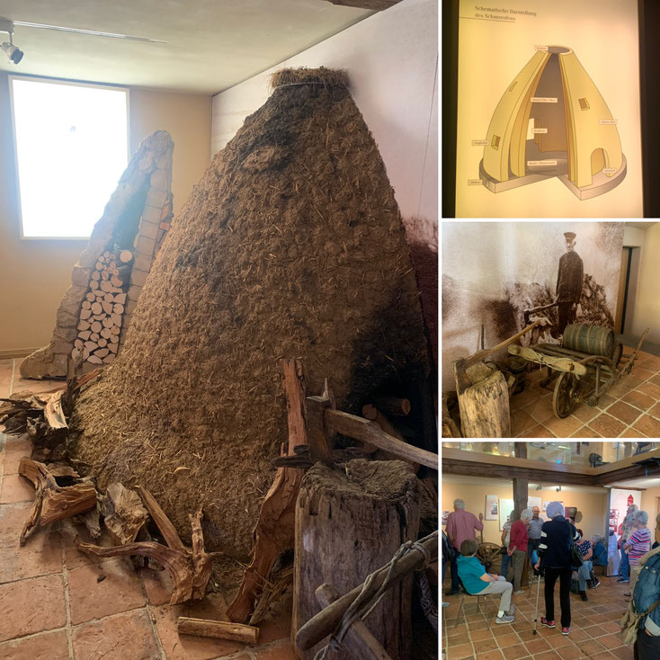 Zunächst haben wir uns im Museum erläutern lassen, wozu und wie der Schmer-Schorsch früher diesen Ofen mit harzigem Fichtenholz betrieben hat und wie er funktionierte. Später konnten wir dann in einer kleinen Demonstration die Verbrennung von Harz unter Luftabschluss in einem Reagenzglas selbst erleben und das entweichende Gas brennen sehen sowie das Ergebnis riechen.